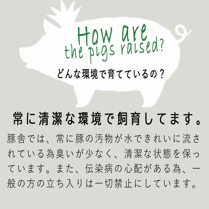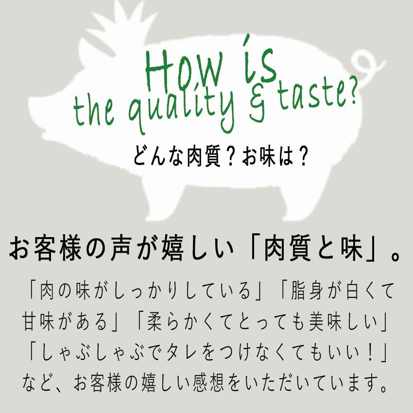 一般的な豚肉よりも「臭みが少なく」「脂があっさり」としているため、豚肉が苦手な方にも好まれています。焼き物やしゃぶしゃぶ、炒め物など、どんな料理でも素材の良さを実感できるはず。